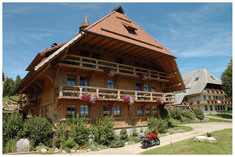 Cet après-midi, Claudius et moi sommes allés explorer les belles routes de la Forêt-Noire, on a même pris le bateau avec nos motos, si si ! Superbe soleil au début, avec des paysages commes sortis d'un livre d'art, des virages en veux-tu en voilà, et un arrêt sympathique à un Gasthof (bistrot)