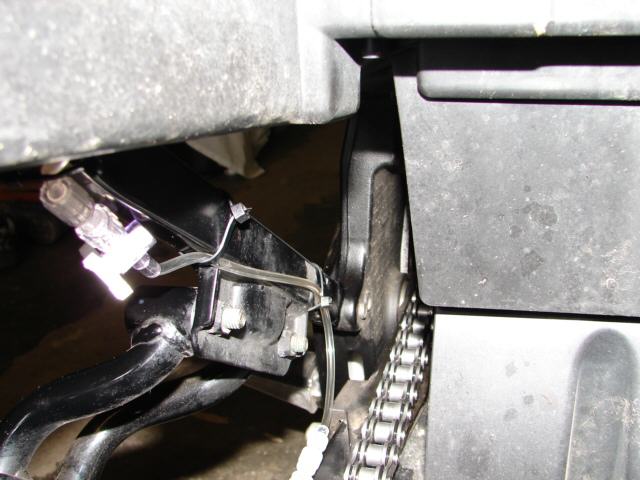 ![]() Couper le tube au ras. ![]() Avec un foret du diametre du tube, extraire le tube qui est collé dans la connection. doucement hein!! ![]() Un peu de glue sur le tube (pas dans la connection), et vite, on emboite. c'est fait!! Pour répondre à vos questions : -pour le "trou de la secu" j'ai dis recup hein! -je n'ai pas laissé le système "goutte à goutte" tout simplement à cause des vibrations qui peuvent modifier le réglage du débit si la roulette -----roule. sinon j'ai testé avec, et le débit sans que le tuyau soit pincé est de 1 goutte toutes les 25s par 20°C (un peu trop). - pour le remplissage sur le côté prévu à cet effet avec une seringue, j'ai aussi fais l'essai et l'huile est trop épaisse pour une seringue, je dis pas qu'elle passe pas mais faut plus d'une heure pour passer les 100ml et un bon mal aux doigts. - j'ai fait aussi le test pour la résistance à l'huile. une semaine la poche et le tube plein d'huile et pas le moindre problème. - pour le dosi-flow (régulateur de débit) l'huile de tronconneuse je sais pas si elle passe mais de la 20w40 moteur il n'y a pas de problème et comme le graissage est permanent je ne vois l'utilité d'une huile filante. Bon brico-chouette Ajout du 30/04/2006 voila, j'ai fait l'essai! 550km, autoroutes, nationales, departementales, toutes sortes de routes et c'est une pure merveille, tout se passe comme je l'imaginais dans ce qui suit: "lors des acc l rations la chaine se tend en partie sup rieure, celle qui tracte, et elle est d tendue en partie inf rieure (facon de parler hein) et inversement lors de la d c l ration. je compte sur cet effet de battement en plus des irr gularit s de la route pour qu'elle vienne faire vibrer mon petit tube final pour que s' coule l'huile au contact (l je vous vois venir, hi,hi). c'est pour ca que j'ai utilis un tube final plus souple et de diametre sup rieur celui de la tubulure enti re" ![]() pas mal de crasse ject sur le bras oscillant, b quille centrale, carter de chaine, bref ma chaine s'est nettoy seule malgr que je l'ai nettoy avant au p trole et petits soins. on trouve des traces d'huile sur la jante et sur le flan du pneu, mais pas de soucis, j'en ai fais des virolos et pas la moindre glissouille. je pense que c'est sur l'autoroute que l'huile a gicl . la prochaine fois que je fais le plein de la perf, je vais mettre de l'huile de boite pour r duire la fluidit et je pense que le probl me sera r gl . bref, que du bonheur!!!!!